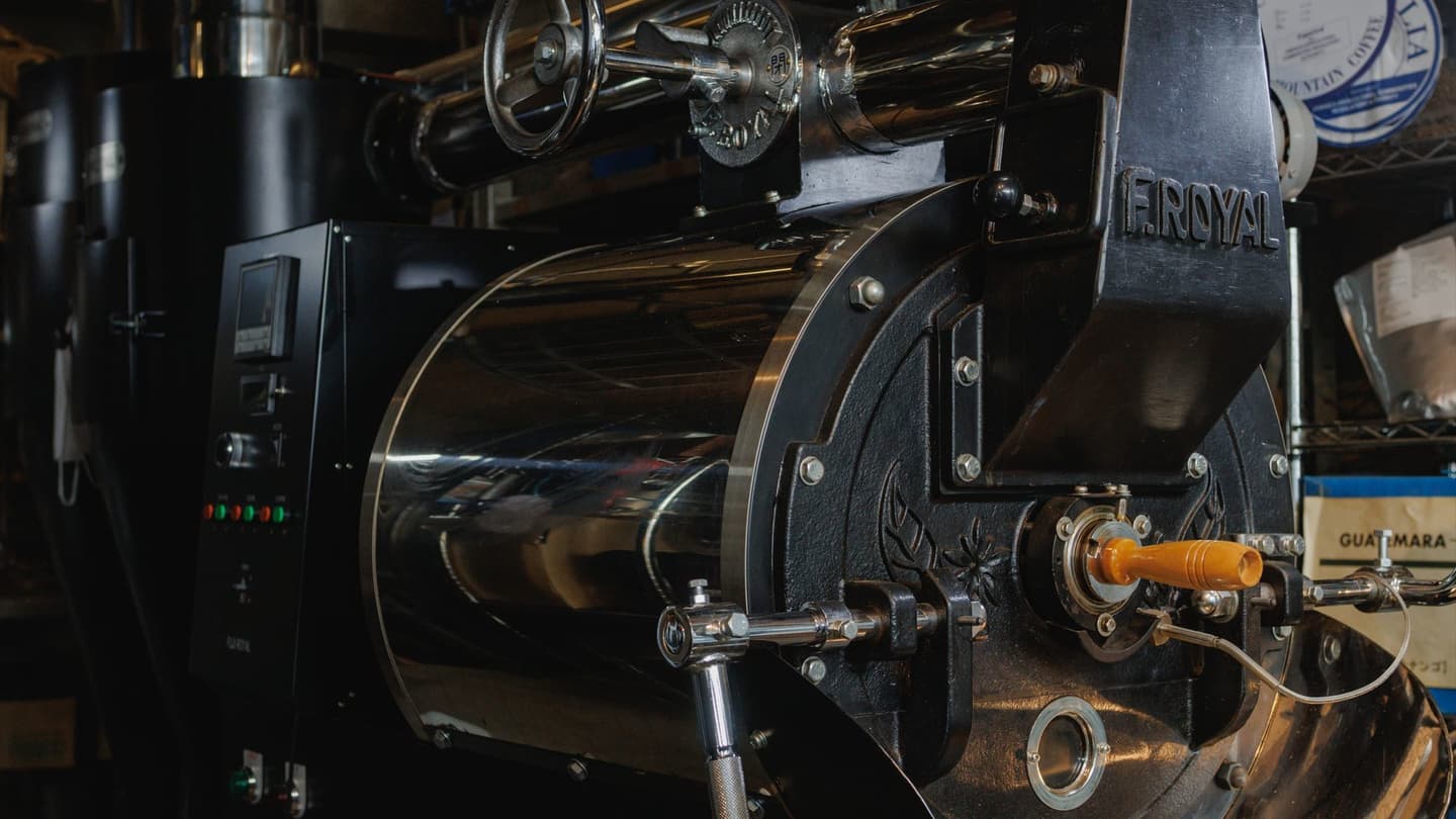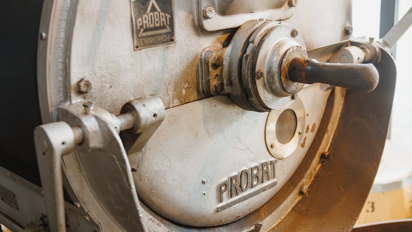 まる味屋珈琲店ではPROBAT社の半熱風式焙煎機<1971年製>を使用。齢50歳を超えるヴィンテージ機でありながら、丁寧なメンテナンスを重ね今なお現役で稼働する。